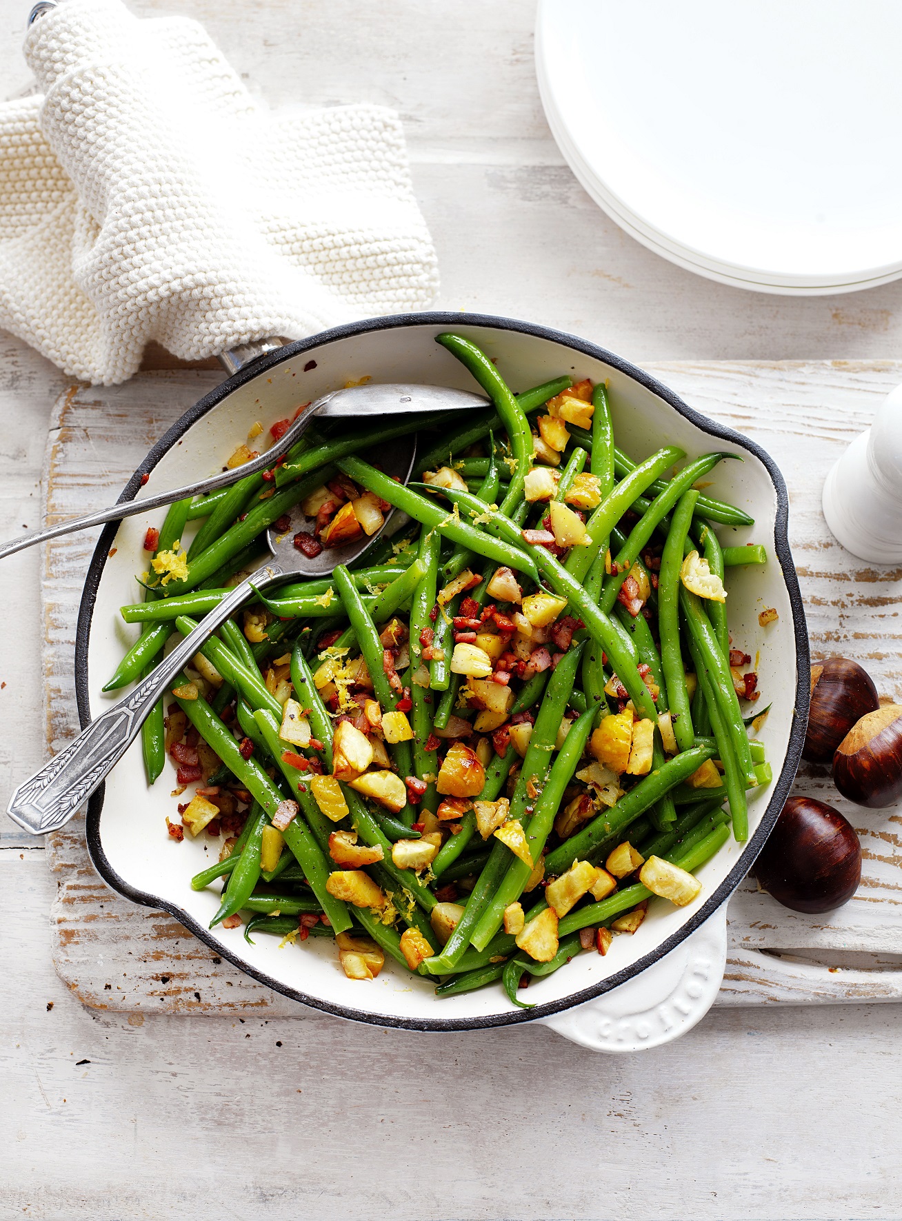 Chestnut & bacon crumb with green beans