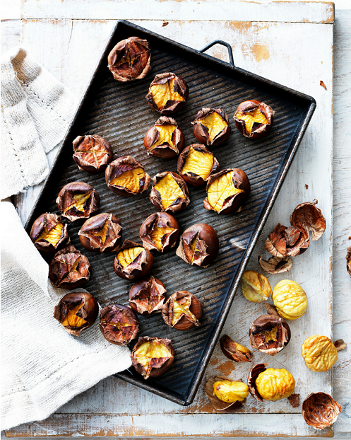 - Coat cooked and shelled chestnuts in olive oil, dust with chilli flakes and warm in a hot oven.