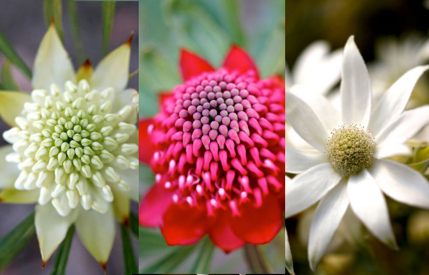 White and red waratahs are striking and long-lasting, while tactical flannel flowers have a short season.