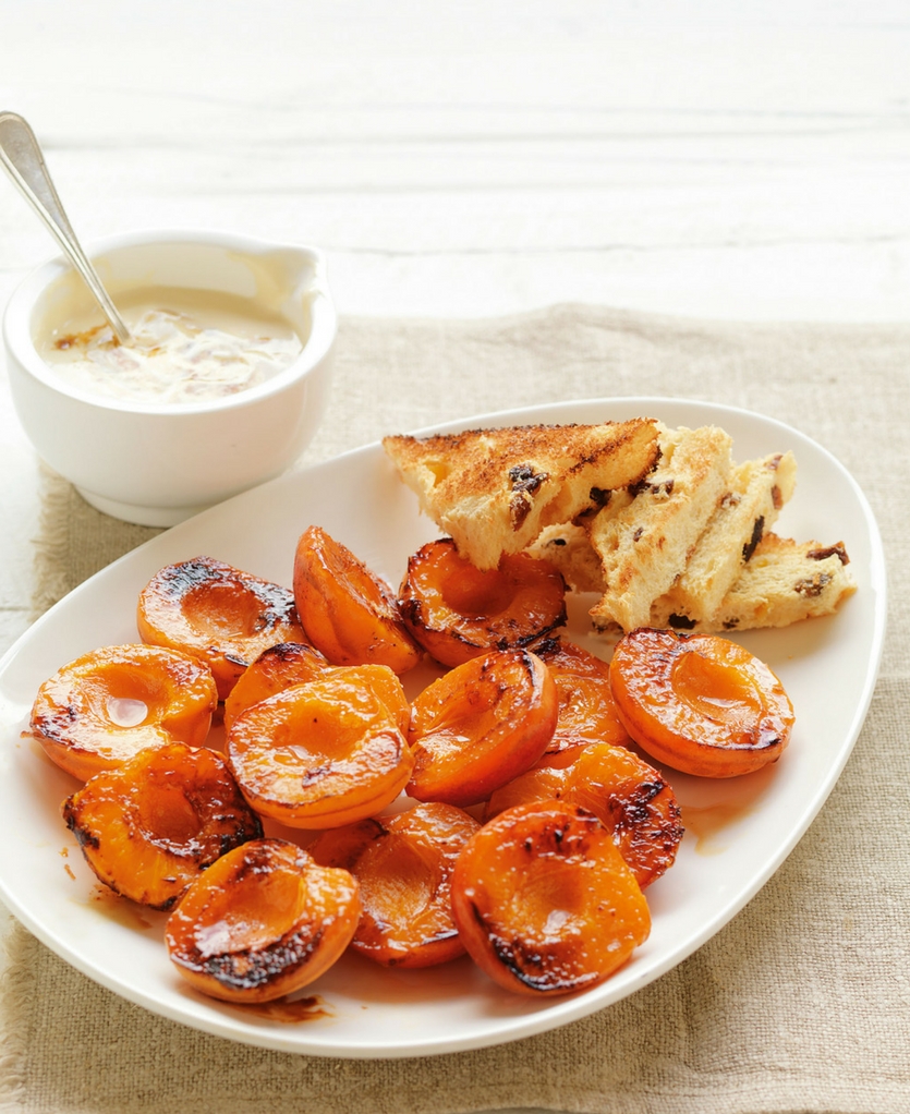 Apricots with brown sugar yoghurt & panettone