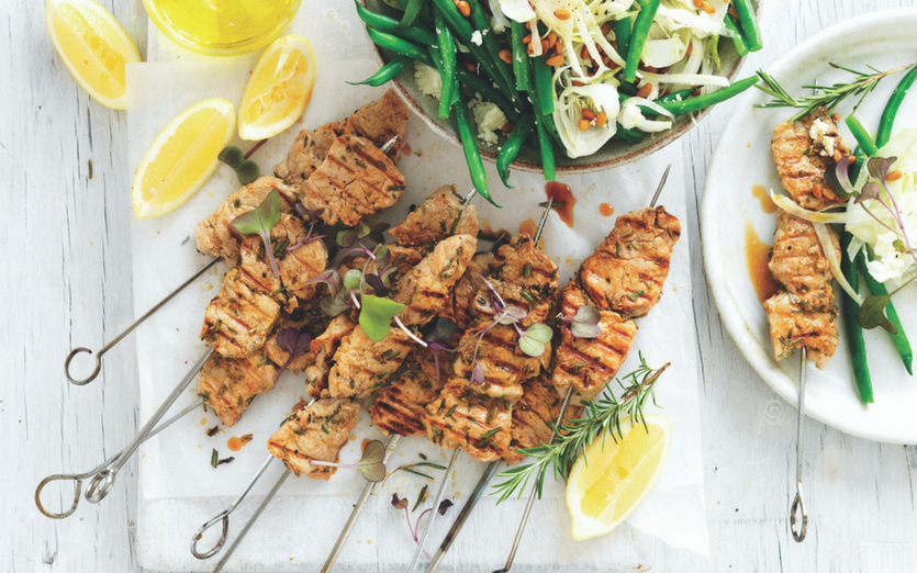 Rosemary Pork Skewers with Bean & Fennel Salad