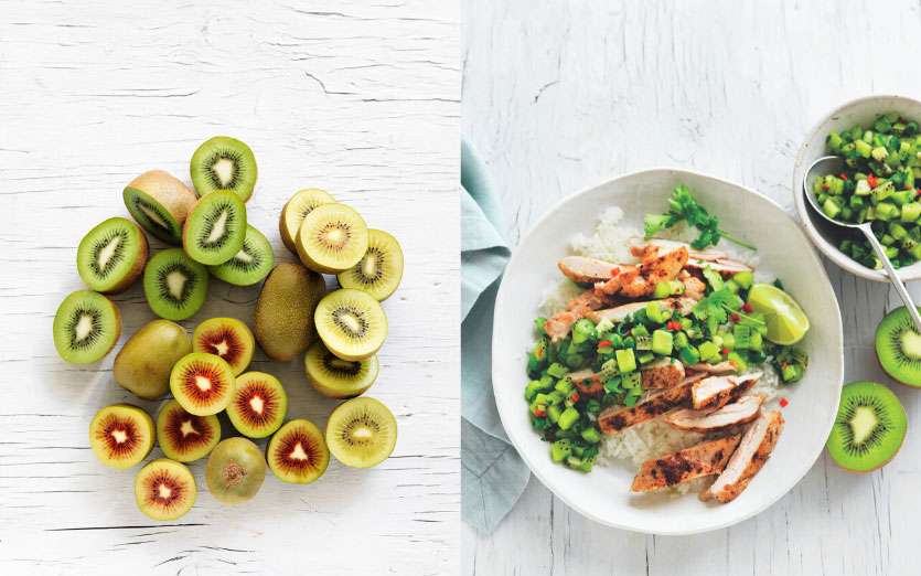 Nothing quite beats a kiwifruit sliced into a fruit salad or dipped in dark chocolate but here are two other great ways to add kiwi into your daily diet.