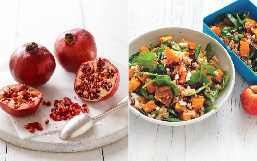 With their glorious sweet/sour flavour, pomegranates are used to enhance many sweet and savoury dishes. Try these two delicious Autumn dishes.