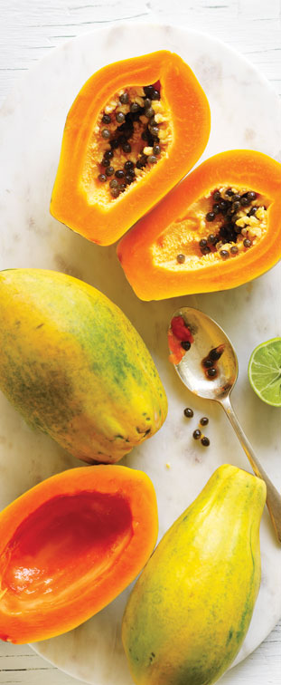 Delicately sweet, papaya is one of the most nutritious fruits! It is rich in both vitamin C (200g would provide 2–3 days’ supply) and beta carotene which the body converts to vitamin A.