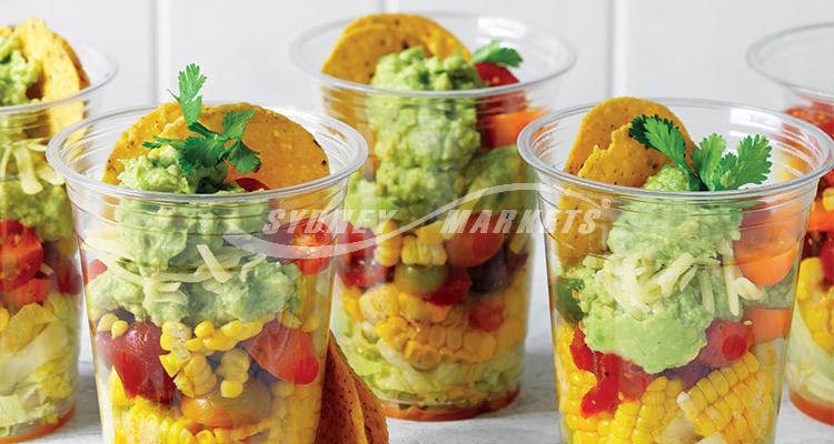 Avocado, sweetcorn & tomato salsa salad cups