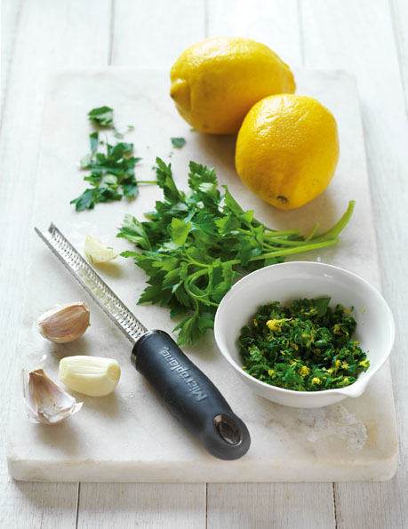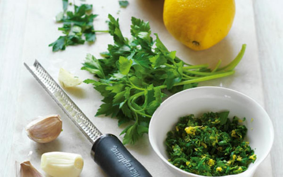 Traditionally an accompaniment to the Milanese braised veal shank dish ossobuco alla Milanese, gremolata is also delicious served with beef and lamb casseroles, spoon over rich vegetable soups, or as a seasoning to enliven tomatoes, lamb, salmon, chicken, potatoes and prawns.