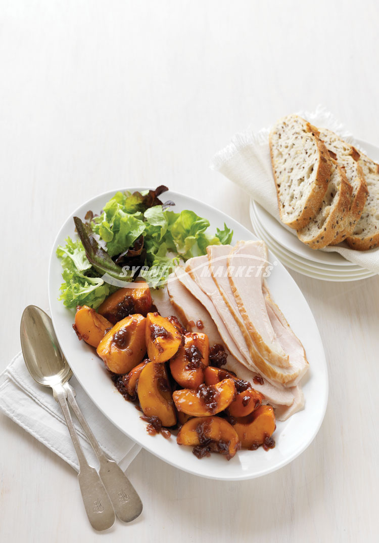 Step 2 Arrange balsamic apricots, turkey and salad leaves on a serving platter or plates and serve with crusty bread.