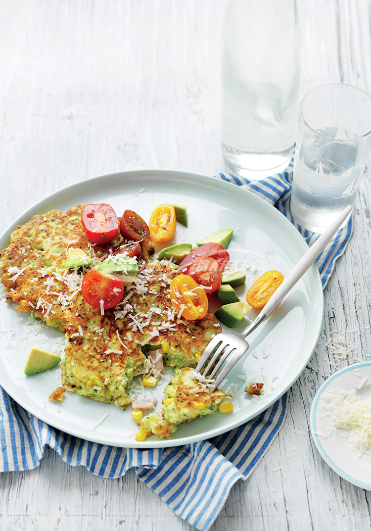 A great way to ‘hide’ green veggies, these delicious hotcakes can be served hot for breakfast or brunch or chilled in the school lunch box. Freeze any leftover hotcakes between sheets of baking paper in an airtight plastic container.