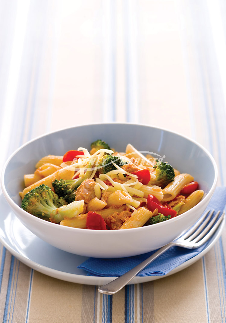 Step 3 Heat oil in the saucepan used for the pasta over medium heat. Add tomato paste and cook, stirring, for 30 seconds. Add tomatoes to pan and cook, stirring often, for 2–3 minutes or until tomatoes slightly soften. Reduce heat to medium-low, add cream and gently stir to combine. Add cooked pasta and reserved cooking liquid, broccoli, tuna and cheese. Toss gently over low heat until combined. Sprinkle with extra shredded tasty cheese to serve.