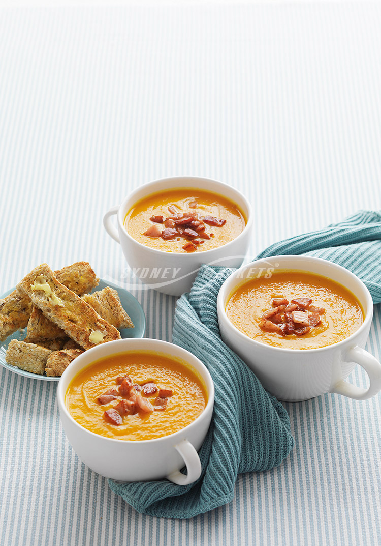 - Creamy carrot, kumara & bacon soup