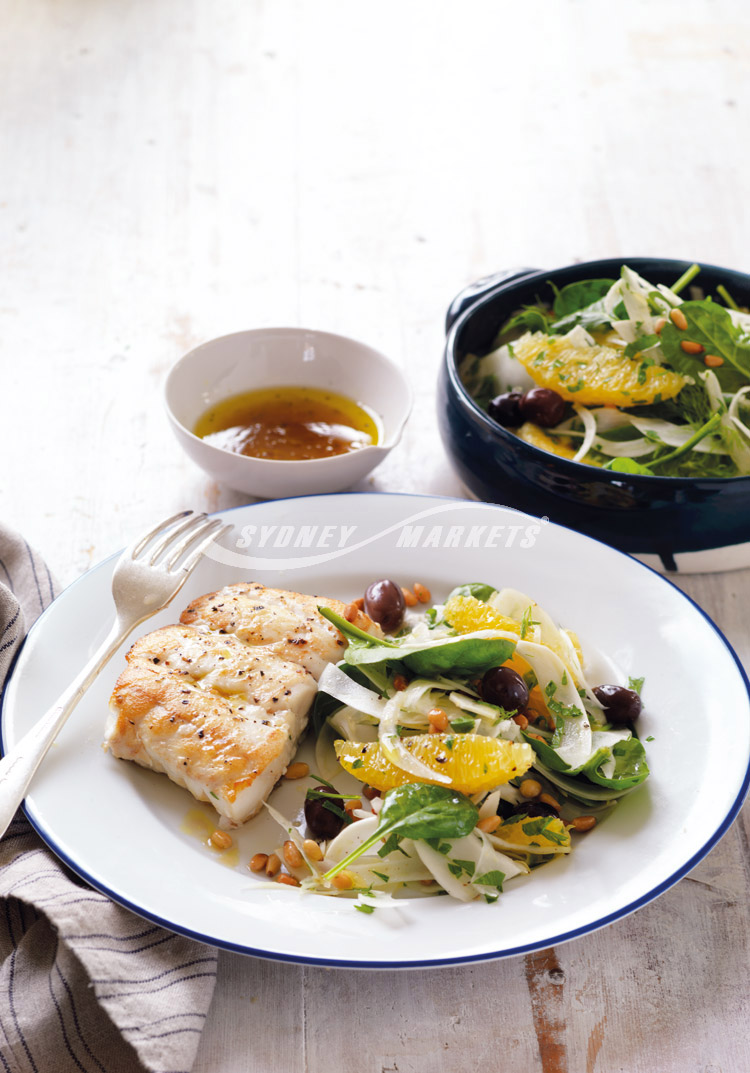 Step 4 Add pine nuts and dressing to fennel salad. Gently toss to combine and serve with fish.