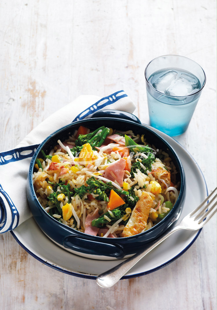 - Fried veggie rice with ham & eggs