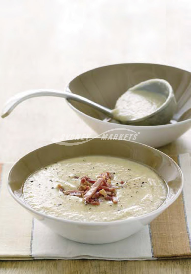 Jerusalem artichoke, leek & bacon soup