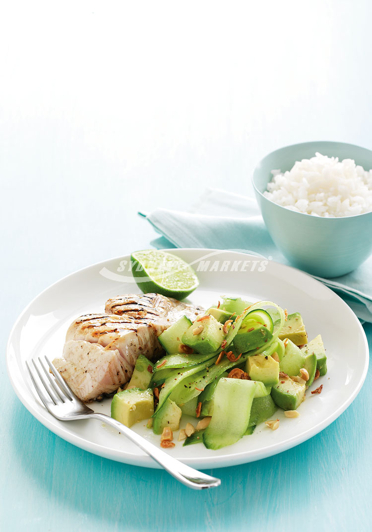 - Lime-marinated fish with cucumber & avocado salad