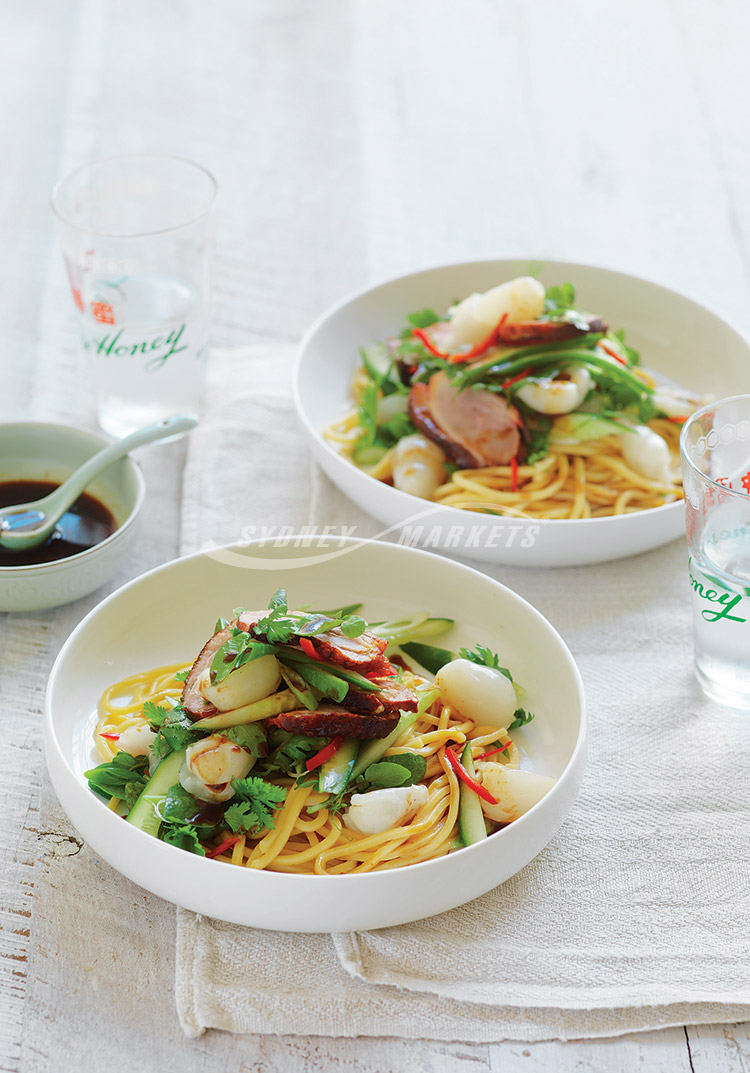 Step 3 To serve, slice duck. Arrange noodles, duck and lychee salad in serving bowls. Drizzle with dressing and serve.