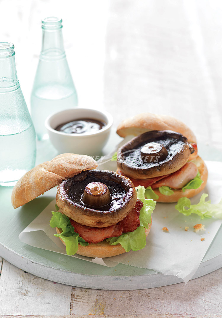 - Mushroom & bacon burgers