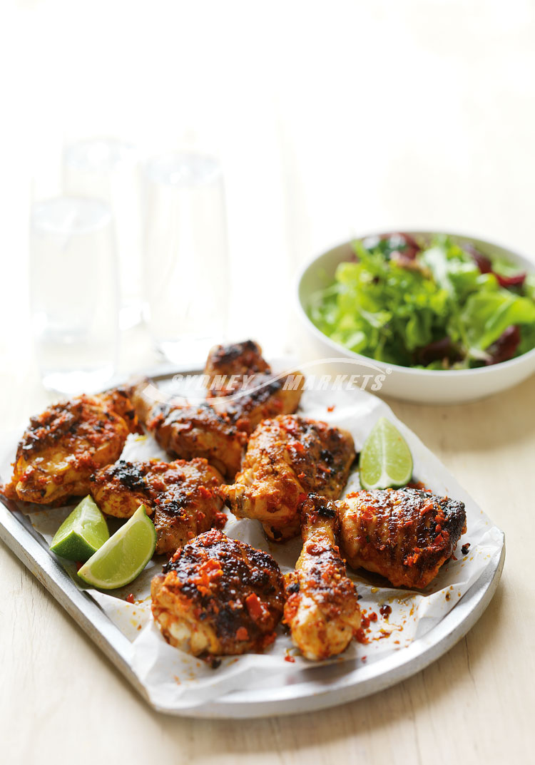 Step 3 Preheat a greased barbecue plate over medium heat. Barbecue chicken, basting with any remaining piri piri paste and turning occasionally, for 35–40 minutes or until just cooked through. Serve with a leafy green salad and lime wedges.