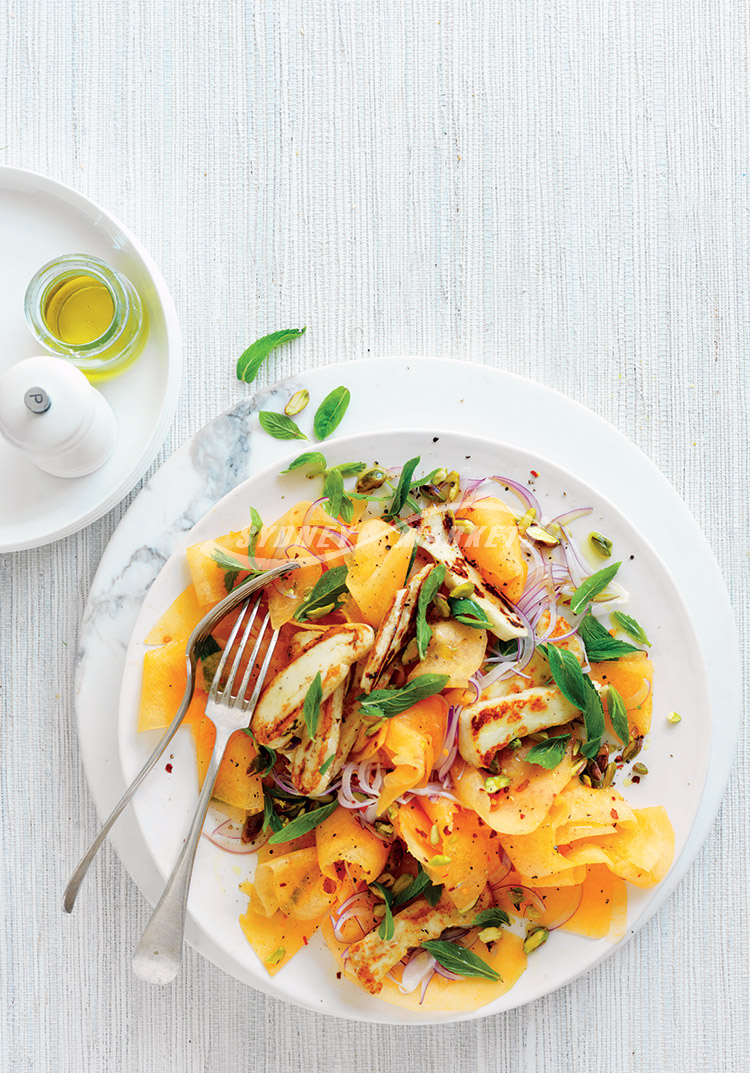 - Rockmelon ‘carpaccio’ & haloumi salad