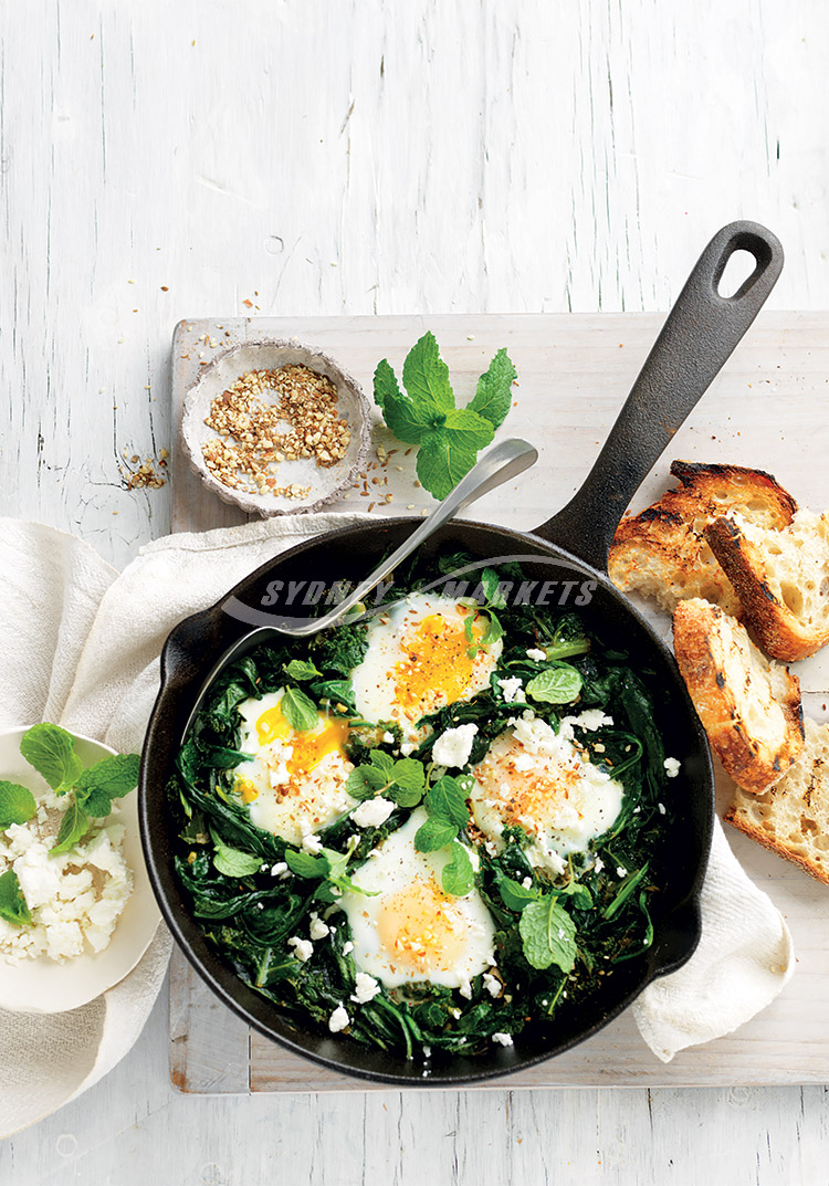 - Sauteed greens with eggs, mint & feta