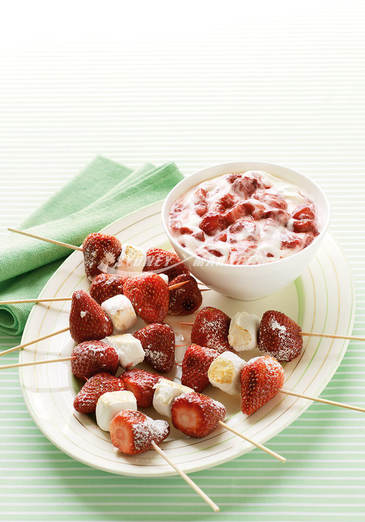 Strawberry & marshmallow sticks with strawberry yoghurt