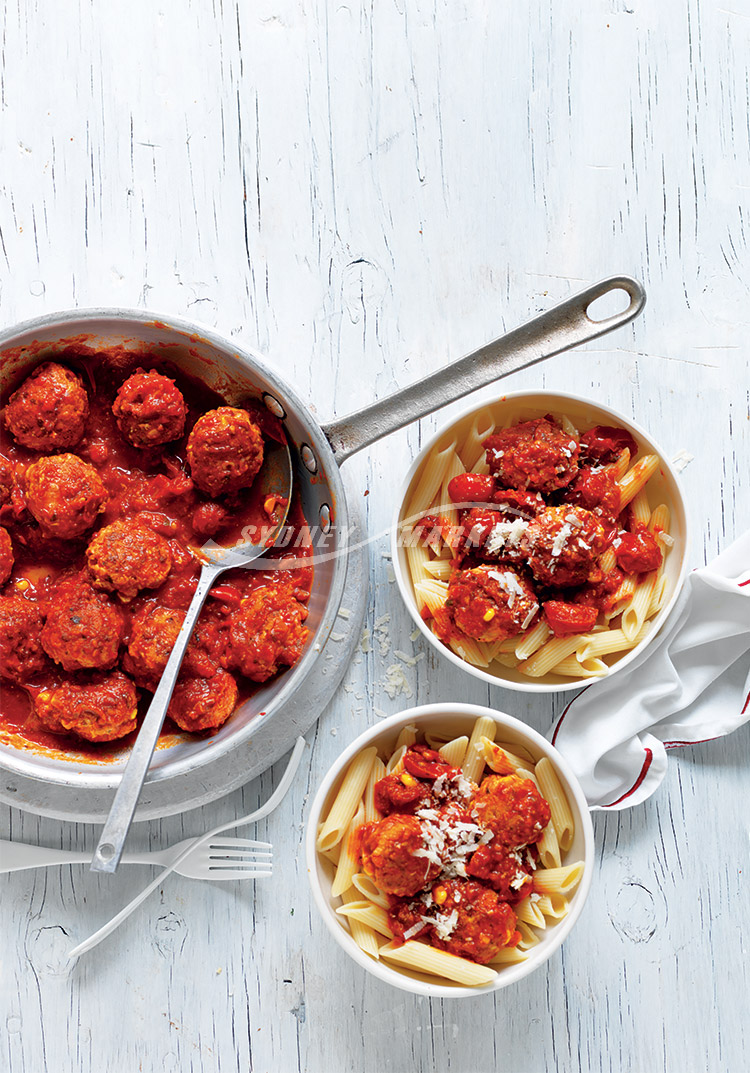 Step 4 Meanwhile, cook penne in a large saucepan of boiling water following packet directions. Drain. Serve the penne with the tomato and rissoles and grated parmesan.