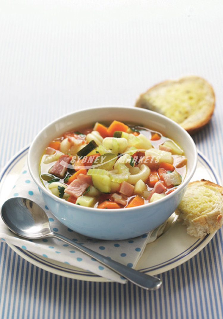 Vegetable, bacon & pasta soup