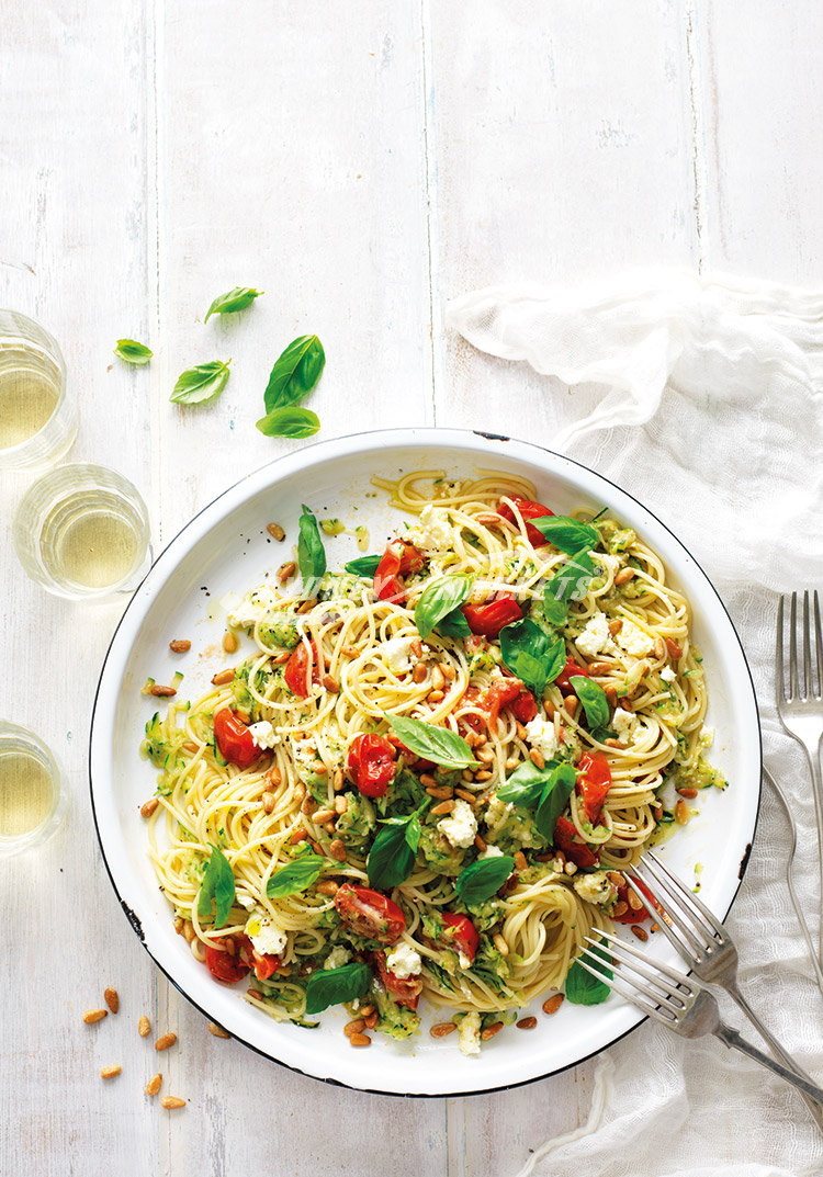- Zucchini, tomato & basil spaghetti with ricotta